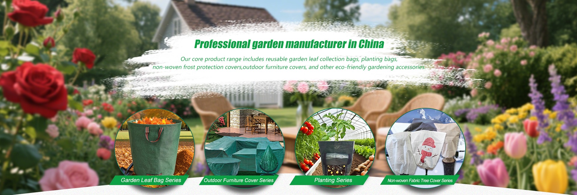 Belangrijkste producten:Tuintassen, serie voor buitenmeubelhoezen, opbergzakken, serie plantzakken, serie niet-geweven stoffen